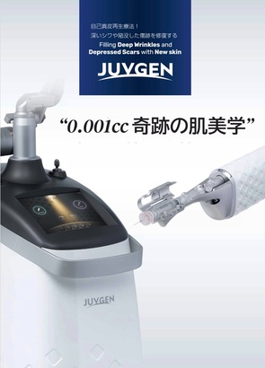 ジュブゼンは、ガスと液体を同時に注入可能で、1回の注入が0.001mlで調節が可能。注入だけでなく、自己真皮の再生が可能になり、深いシワ、ニキビ跡や傷跡の凹みなど様々な治療が可能な注入機器になります。