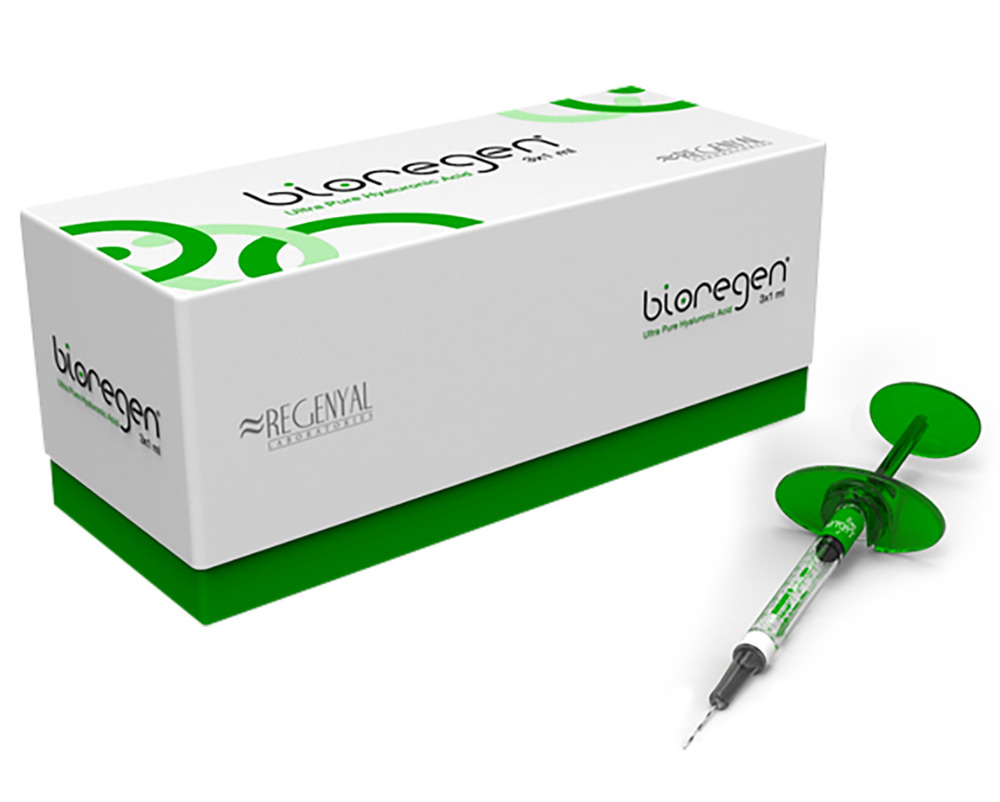 バイオリジェンは、非架橋ヒアルロン酸をベースとして、低分子(2千ダルトン)、中分子(10万、20万、50万ダルトン)、高分子(100万ダルトン)の5つの分子量からなる世界初の製剤です。バイオリジェンは、皮内に注入後、薬剤が拡散し、ボリュームアップにより、肌のふっくら感、ハリ、弾力、シワの改善が得られます。更に、ECMリモデリングにより、自己のコラーゲン、エラスチンが増加します
